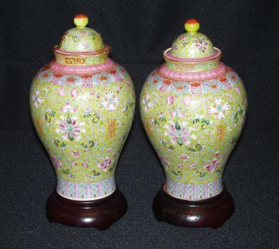 PAIR 20TH C. CHINESE POLYCHROME GINGER JARS