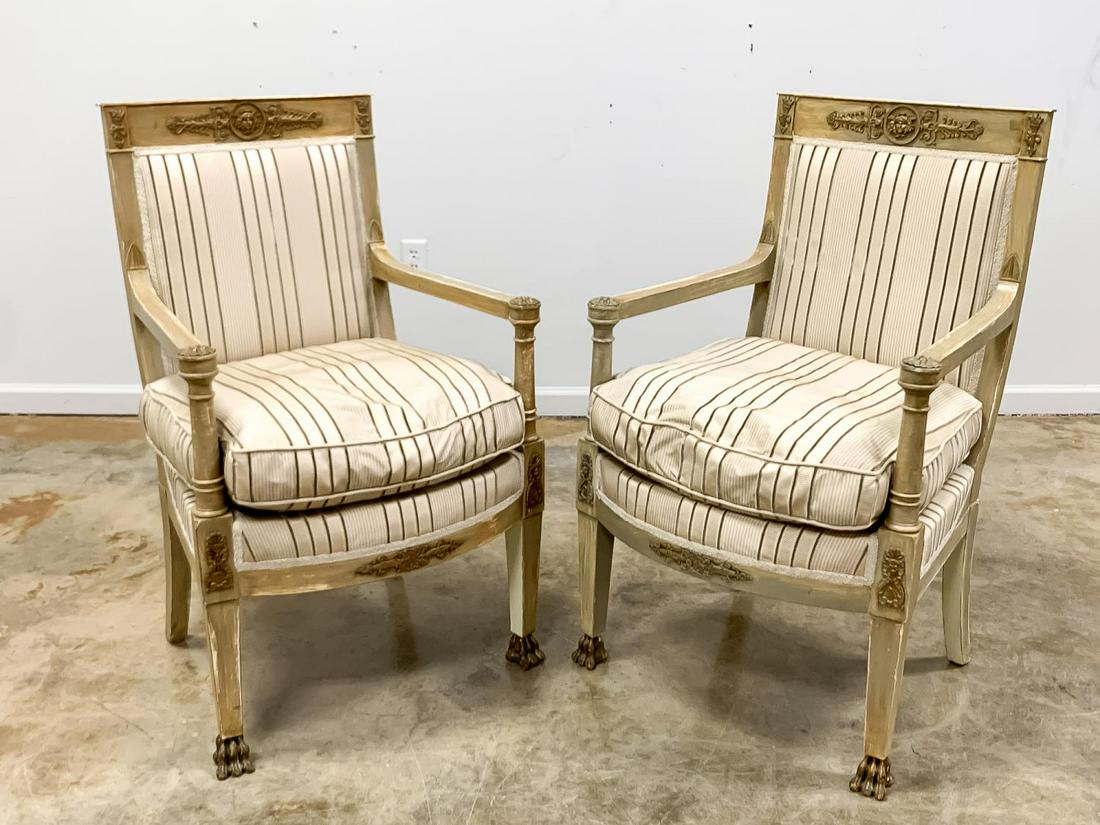 PAIR, 20TH C. DIRECTOIRE STYLE FAUTEUILS