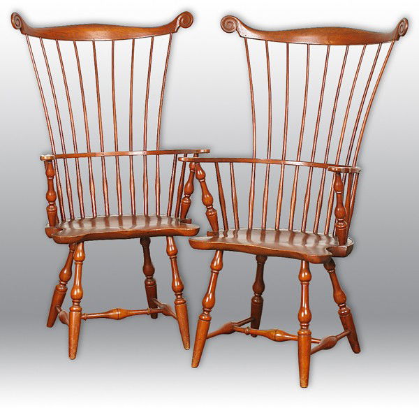 Pair 20th c Windsor Arm Chairs