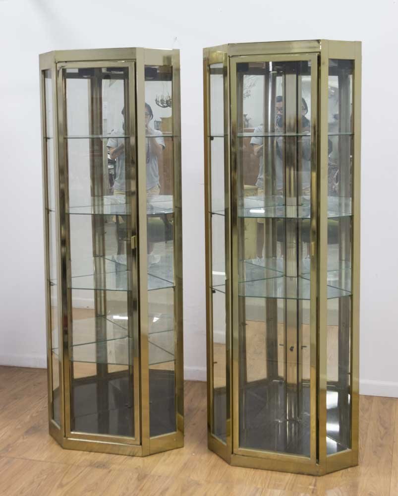 Pair 70s Brass Corner Vitrines