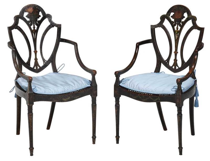 Pair Adam Paint Decorated Shield Back Armchairs