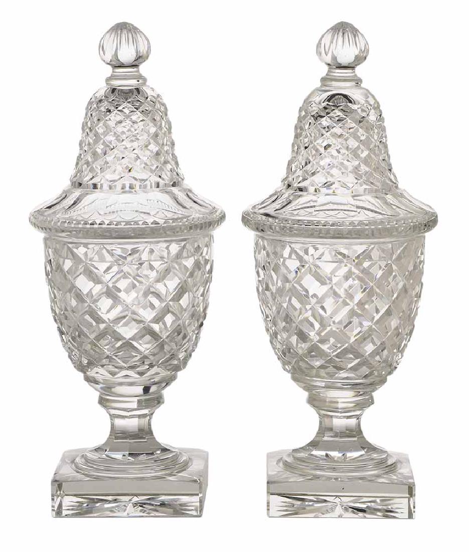 Pair Anglo-Irish Cut Crystal Covered
