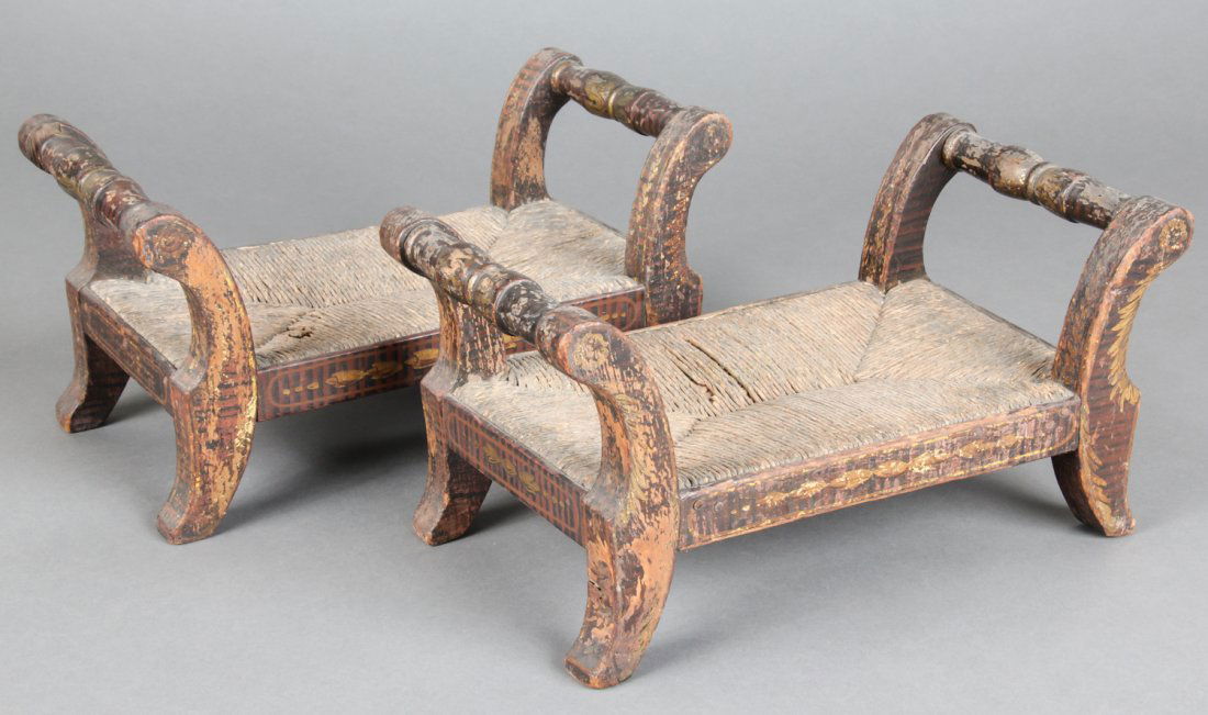 Pair Antique American Paint Decorated Stools
