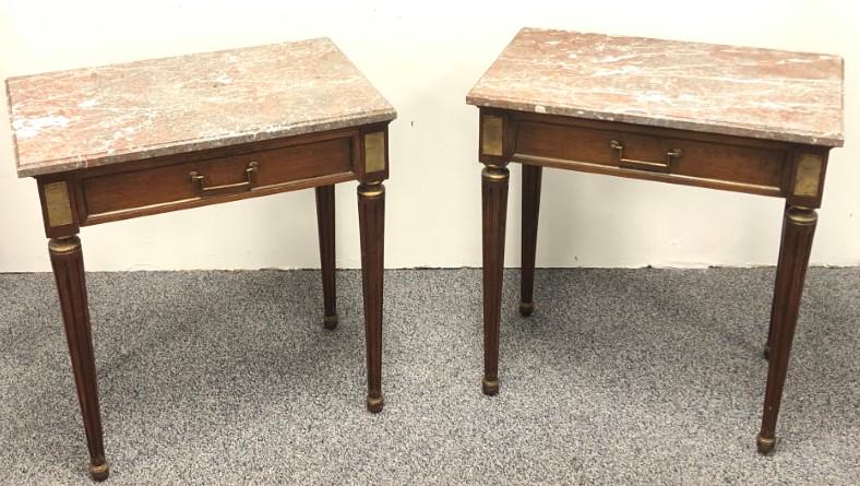 Pair of Louis XV Style Parquetry & Marquetry Marble Top Mahogony Nightstands, late 19th c.,Crescent City Auction Gallery4.3(248)$3252 days Left