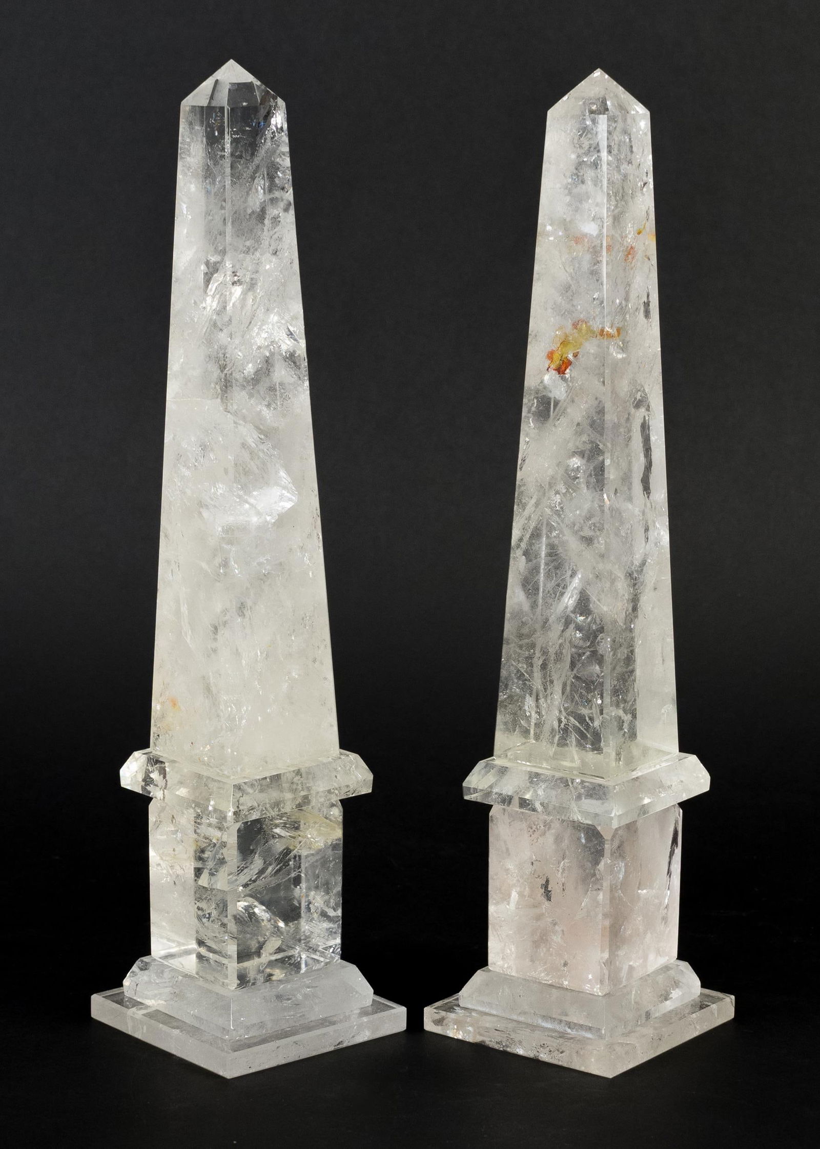 PAIR ANTIQUE ROCK CRYSTAL OBELISKS.