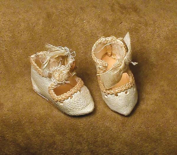 PAIR ANTIQUE TINY SIZE "0" DOLL SHOES. 1 ¼" leng