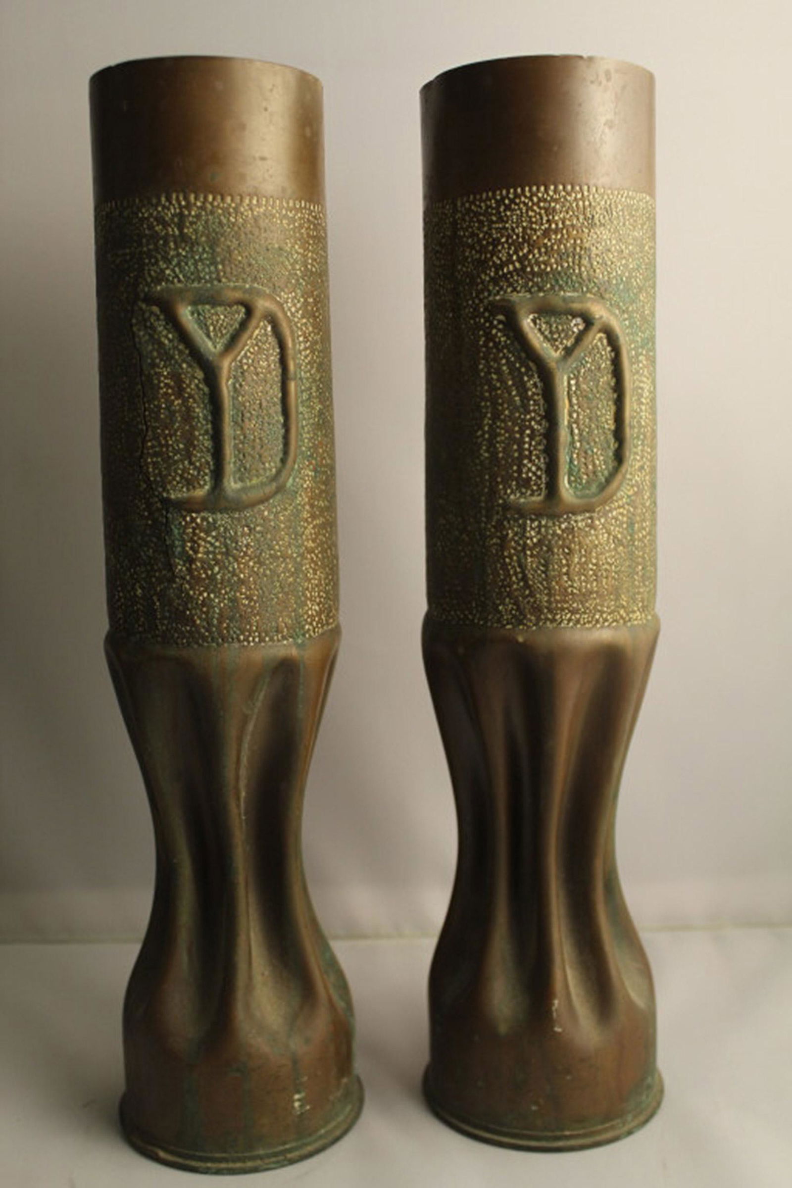 ANTIQUE WWI ARTILLERY SHELL TRENCH ART VASES (3)4 days LeftA PAIR OF QINGBAI FUNERARY JARS AND COVERS, SONG DYNASTY7 days Left2 Flattened Horn Powder Flasks w Brass Fittings3 days LeftPr Copper & Brass Powder Flasks G & J W Hawksley3 days LeftA pair of exquisite gold, silver and copper feather cupsMar 18, 2026Pair Mitsunobu for Kuroda Workshop Gilt Bronze Vases RoostersMar 14, 2026Pair Vases, Unmarked Bohemian Art GlassApr 18, 2026Pair of Pure Copper High Relief Engraved Four Divine Beasts VasesMar 16, 2026Pair Of Vases, Solid Sterling Silver, Marked Shiebler & Co, Model #824, Jewelers Mark JC GroganMar 21, 2026A pair of bronze vases with gold inlay.1 day LeftA pair of Han Dynasty copper gold and silver account hooksMar 21, 2026Ancient kiln poetry and prose appreciation bottle4 hrs LeftWWI - WWII ITALIAN & US 75MM TRENCH ART SHELLSMar 15, 2026Pair Vases, Unmarked Roseville Art Pottery, Donatello PatternApr 18, 2026Rare Pair of Russel Wright Ceramic Nude Lamps with Aluminum BaseMar 18, 2026Pair Vases Signed Honesdale By Dorflinger, Green Acid Cut To Clear3 days Left