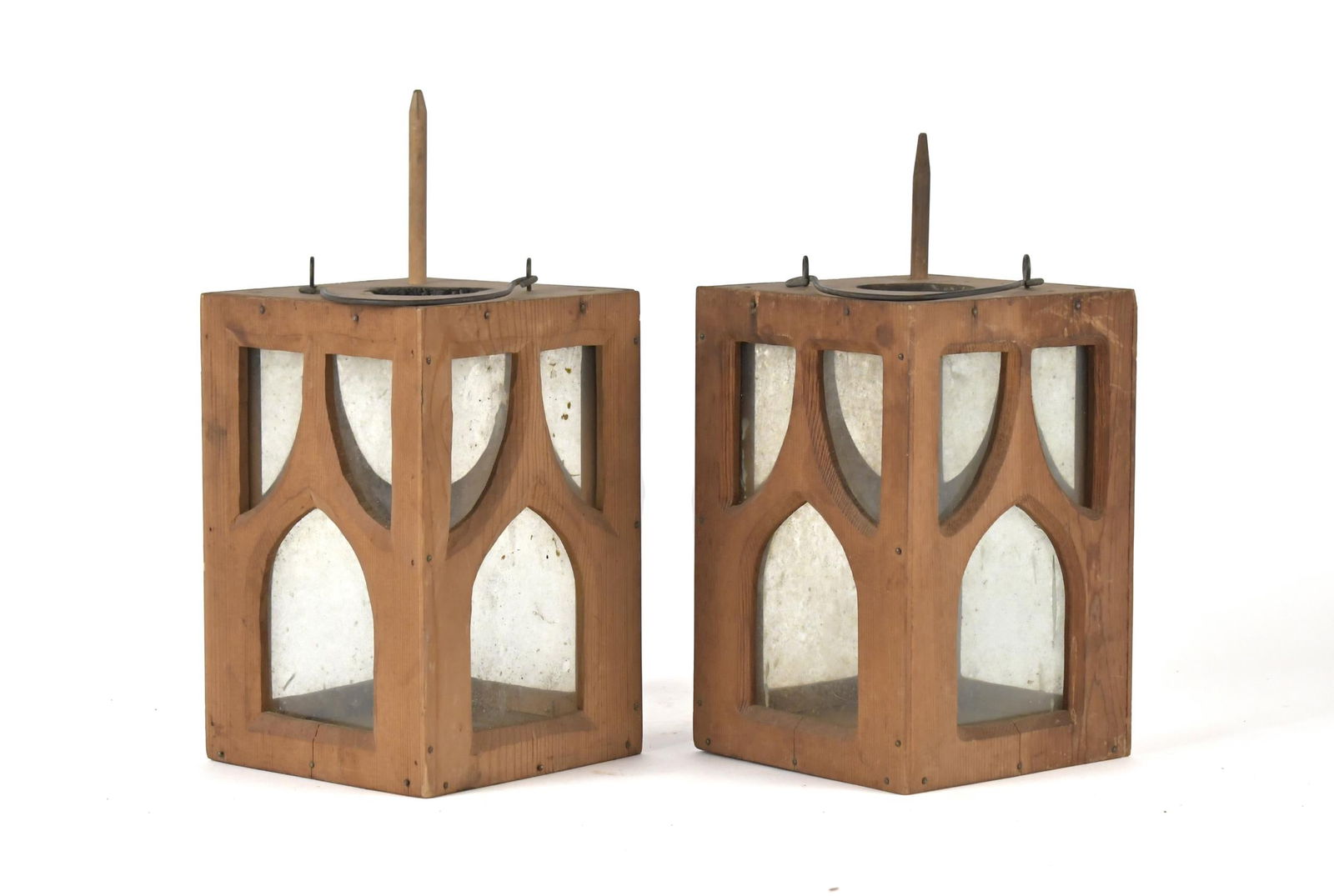 PAIR ANTIQUE WOOD PRICKET LANTERNS.