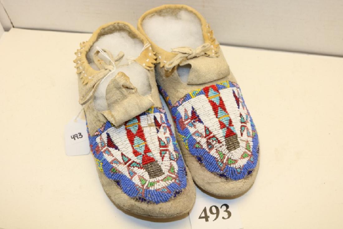 SoldPair of Plains Indian Moccasins.Pair of Plains Indian Moccasins. Sinew-sewn and bead decorated.See Sold Price