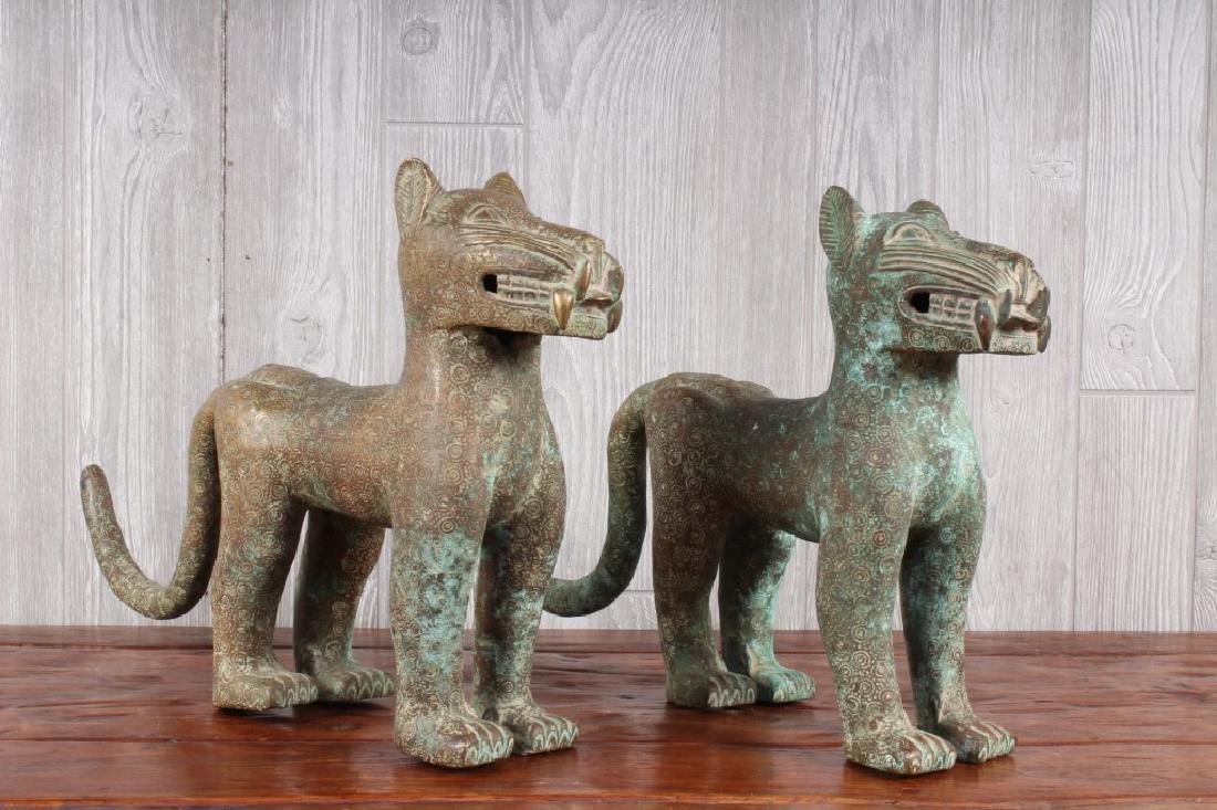 Pair Benin Bronze Leopards