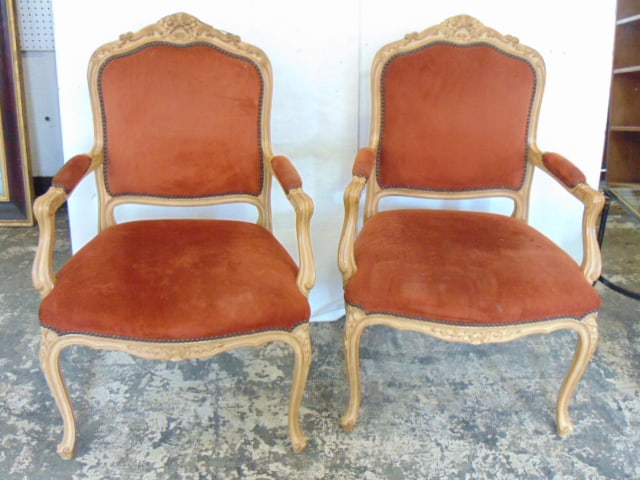 Vintage Regency Style Chairs by Baker Furniture Newly Reupholstered - PairPair of vintage Bombay Company Parsons Chairs w/ rich textured designer fabricMar 21, 2026Pair of Vintage French Style Arm Chairs with Custom UpholsteryMar 21, 2026Pair of American Victorian Side Chairs446 Lots AwayPAIR OF FRENCH STYLE UPHOLSTERED ARMCHAIRS18 hrs LeftKarges French Louis XVI Armchairs Pair High Quality Upholstery7 days LeftFrench Style Pair of Upholstered Arm Chairs2 days LeftVintage Pair of French Louis XV Style Upholstered ArmchairsMar 19, 2026Elegant Pair of Vintage Gold Finish French Open ArmchairsMar 19, 2026Set of 4 Theodore Alexander French Style Leather Armchairs6 days LeftQueen Anne Peg Construction Mahogany Chairs, Ca. 1760, H 37" W 22" Depth 17" 1 PAIRMar 19, 2026Pair of Victorian Rosewood Side ChairsMar 16, 2026Hancock & Moore Brown Suede Leather French Open Arm Chairs PairMar 21, 2026Elegant Pair of French Louis XV Bergere Chairs in Red UpholsteryMar 22, 2026Elegant Pair of Louis XVI Upholstered Armchairs with Distressed Finish16 hrs LeftCouncill Craftsmen Brown Leather Open Armchairs with Brass FeetMar 18, 2026