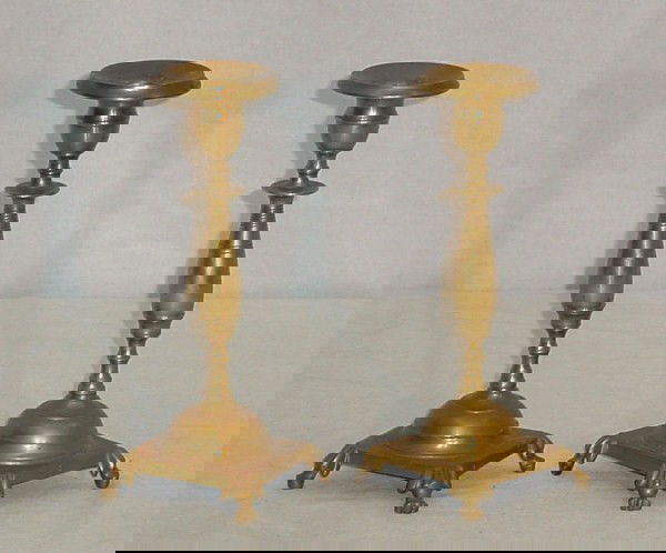 SoldPAIR OF BRASS CANDLESTICKSHEAVY BRASS TURNED COLUMNS ON SQUARE BASES. 7 1/4" H. PLEASE READ CAREFULLY - Terms for Purchasing and Shipping of Auction Items. Please read carefully before bidding. All payments for purchases willSee Sold Price
