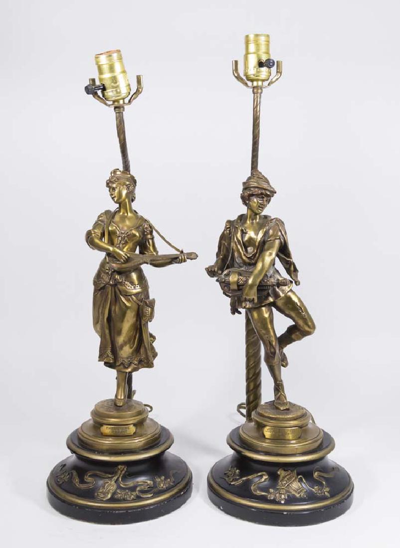 Charles CUMBERWORTH Bronze Candelabra Lamps, Pair