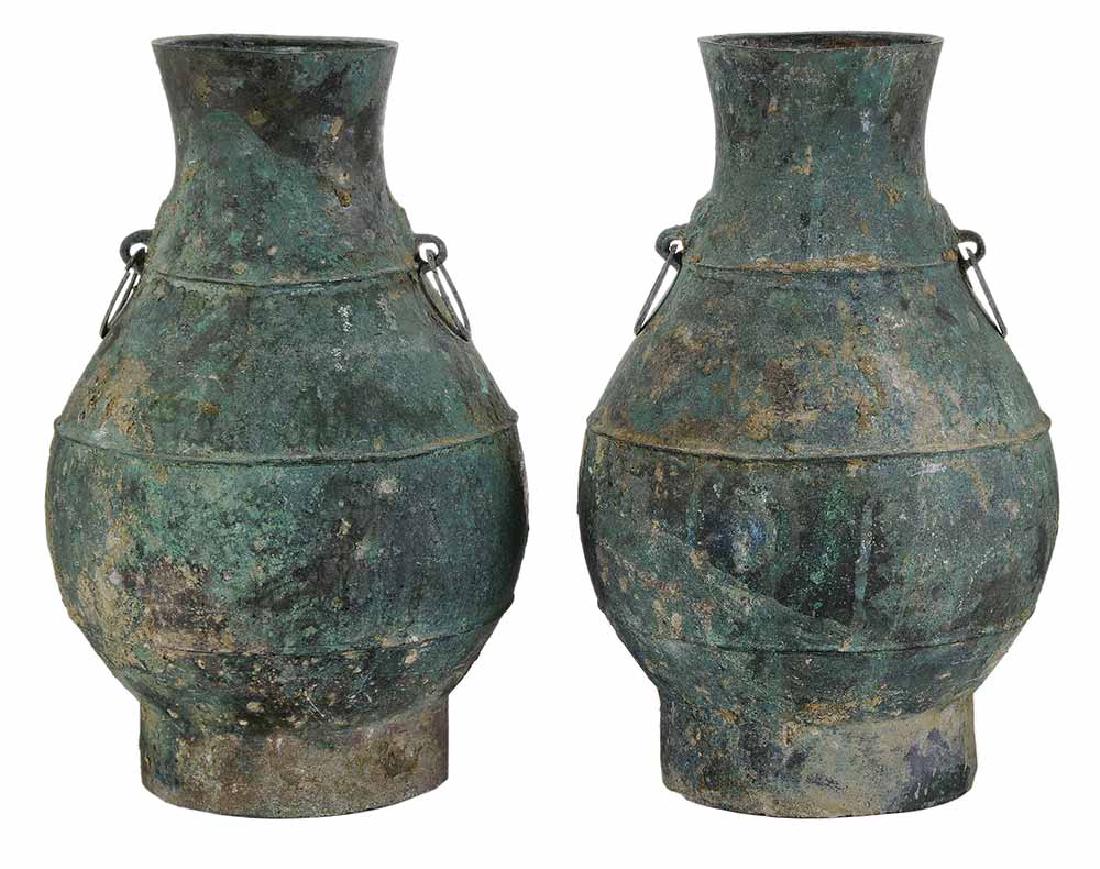 Pair Bronze Wine Vessels