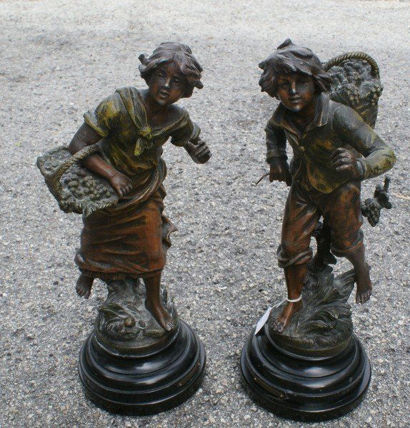 Pair bronzed figures , signed and foundry marked