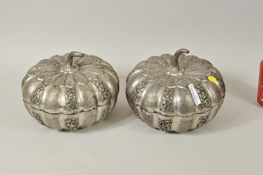 Pair Cambodian Silvered Pumpkin Form Containers