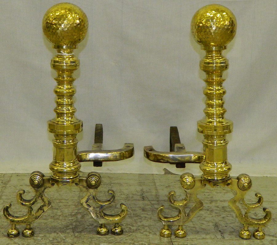 Antique 19th Century Brass Cannonball Andirons Set of 2