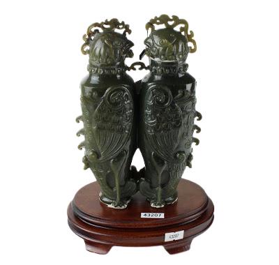 A PAIR OF QINGBAI FUNERARY JARS AND COVERS, SONG DYNASTYMar 11, 2026(2) CHINESE CARVED GREEN HARDSTONE COVERED CABINET VASES20 hrs LeftChinese bronze vase with Lotus and Koi - ChinaA CHINESE ARCHAISTIC CARVED JADE INCENSE BURNER WITH COVERMar 01, 2026PR JAPANESE FLOOR VASES WITH WOODEN STANDS373 Lots AwayPair of Chinese Stone Carved Foo Dogs Figurines5 days LeftImpressive Pair of Green Crackle Porcelain Vases with Bronze MountsFeb 20, 2026A CARVED SPINACH GREEN JADE VASE WITH COVERMar 01, 2026Pair of Celadon-Glazed Porcelain Vessels2 days LeftPair of Impressive Cut Glass Vases with Bronze Seahorse HandlesMar 07, 2026A HETIAN SPINACH-GREEN JADE CARVED BEAST-MASK MOTIF COVERED VASE WITH DOUBLE ELEPHANT HANDLESMar 14, 2026Pr of Reverse Painted Dragon Footed Asian LanternsFeb 28, 2026A pair of exquisite jade cabbage ornaments18 hrs LeftPAIR OF CHINESE FAMILLE VERTE PORCELAIN VASES MARKEDMar 07, 2026Pair of Chinese-Style Metal Vases with Dragon Figures7 days LeftA A SET OF HETIAN SPINACH-GREEN JADE VASES WITH FLORAL MOTIFS, QING DYNASTY19 hrs Left