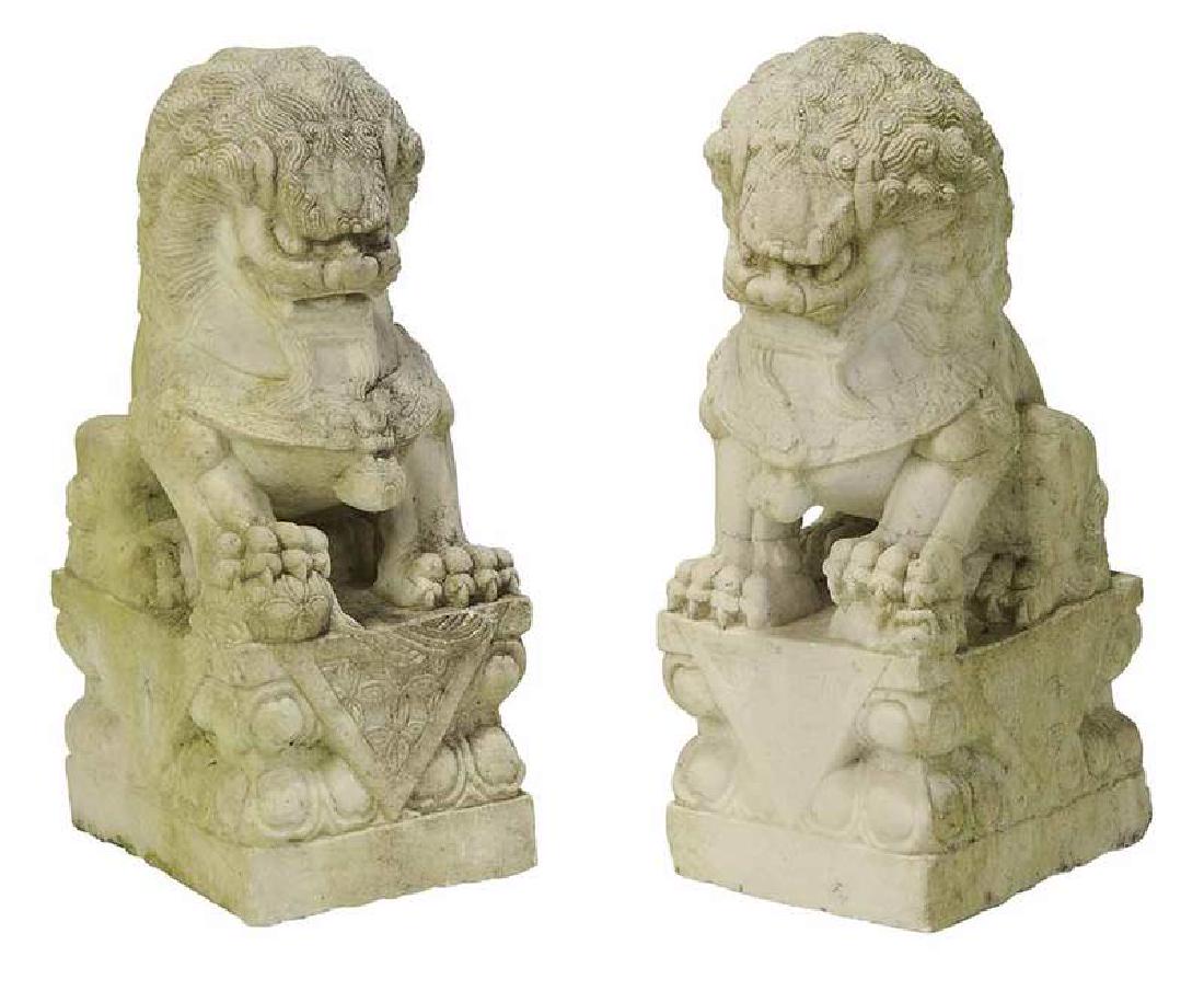 Pair Carved Marble Foo Lions
