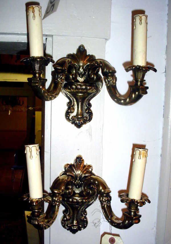 PAIR CAST BRONZE 2 ARM WALL SCONCES