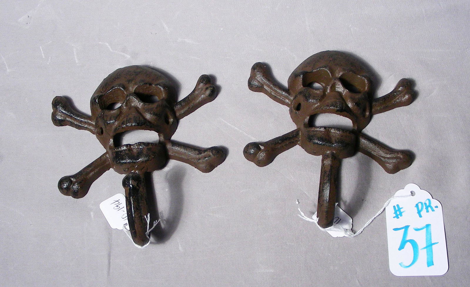 PAIR CAST IRON SKULL WALL HOOKS