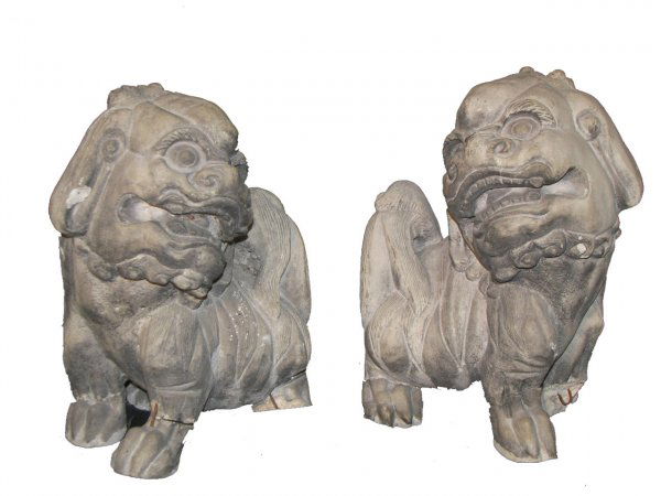 Pair cement Foo dogs 12"h