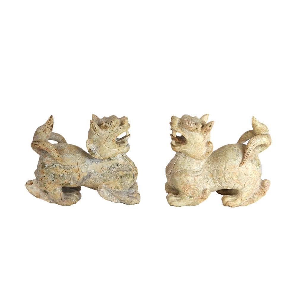 Pair Chinese Carved Hardstone Foo Dogs