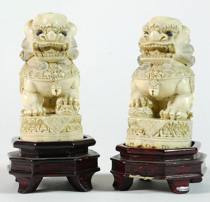 Pair Chinese Carved Ivory Foo Lions