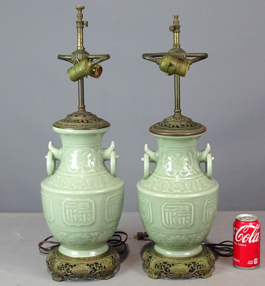 Lot of Two Chinese Celadon Vases, No reserve3 days LeftLot of 2 antique European porcelain lampsMar 02, 2026PAIR CHINESE CARVED JADE GREEN QUARTZ LAMPS7 days LeftA PAIR OF CHINESE REPUBLICAN PERIOD CELADON FLASKS. 23 cm high.6 days Left2pcs Chinese Champleve and Cloisonne Table Lamps.6 days LeftPair of Chinese Style Porcelain Decorative LampsFeb 28, 2026PAIR OF CHINESE CELADON GLAZE PORCELAIN TABLE LAMPSFeb 21, 2026Pair of Chinese Porcelain Lamps.2 days LeftAn Pair of Antique Porcelain Table LampsFeb 21, 2026Pair Chinese Enameled Porcelain Vases Mounted as Lamps Florals3 days LeftPair of Chinese Bronze Archaic Style Lamps4 days LeftPair of Chinese Decorated Porcelain Temple Jar Lamps, 20th CenturyFeb 28, 20262 Chinese Old Porcelain Vases Made Into LampsFeb 18, 2026PR OF ANTIQUE FRENCH VICTORIAN ART NOUVEAU STYLE LAMPSFeb 26, 2026Pair Chinese Ginger Jars Mounted as LampsFeb 28, 2026PAIR OF METAL BRONZED FINISHED TABLE LAMPSFeb 13, 2026