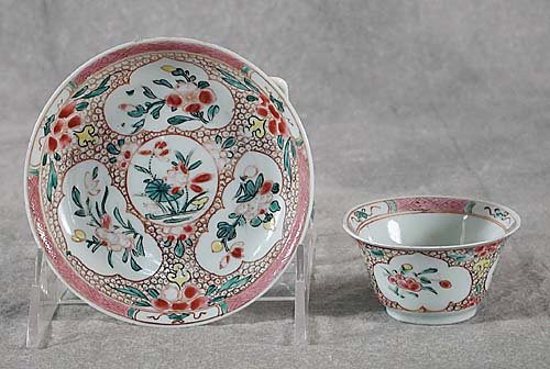 Pair Chinese Export famille rose tea bow
