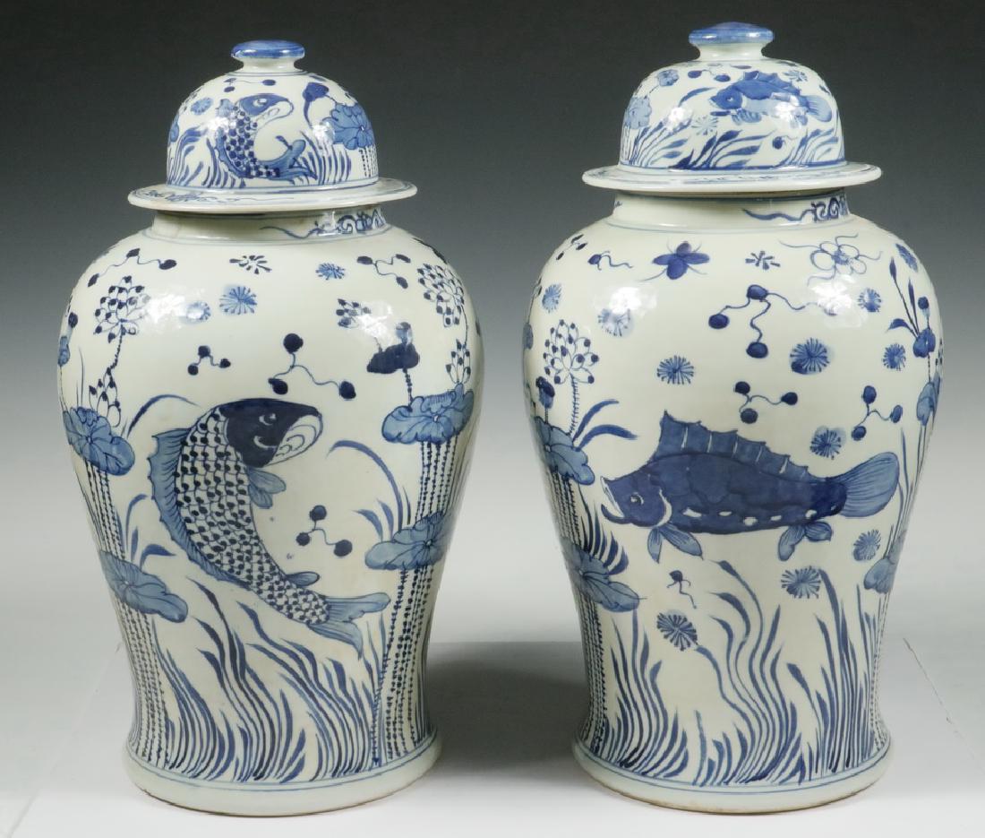 PAIR CHINESE KOI FISH TEMPLE JARS
