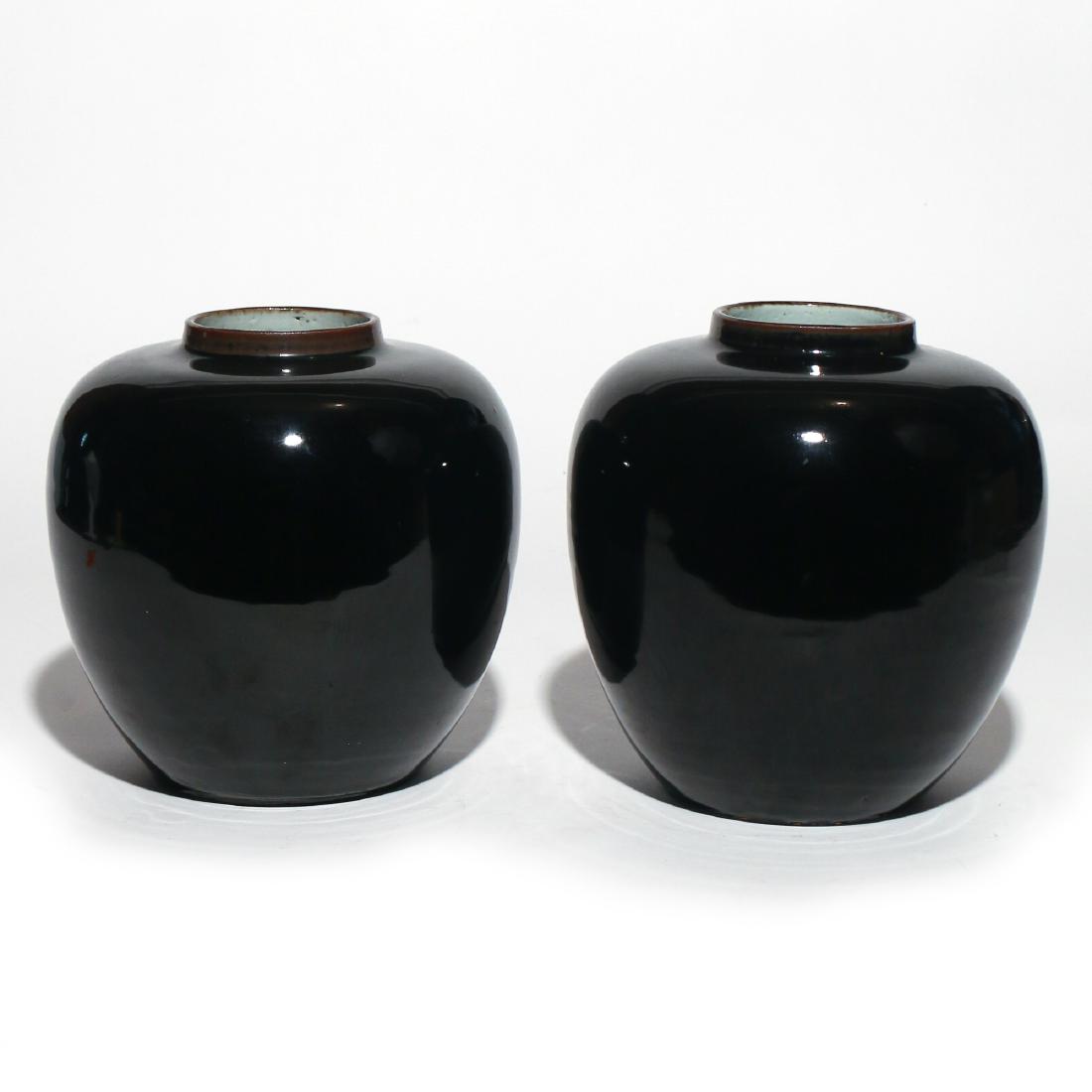 PAIR CHINESE MIRROR-BLACK GLAZED JARS