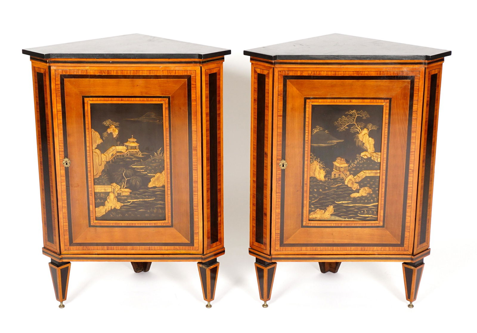 Pair Chinoiserie Decorated Ecoignure Cabinets