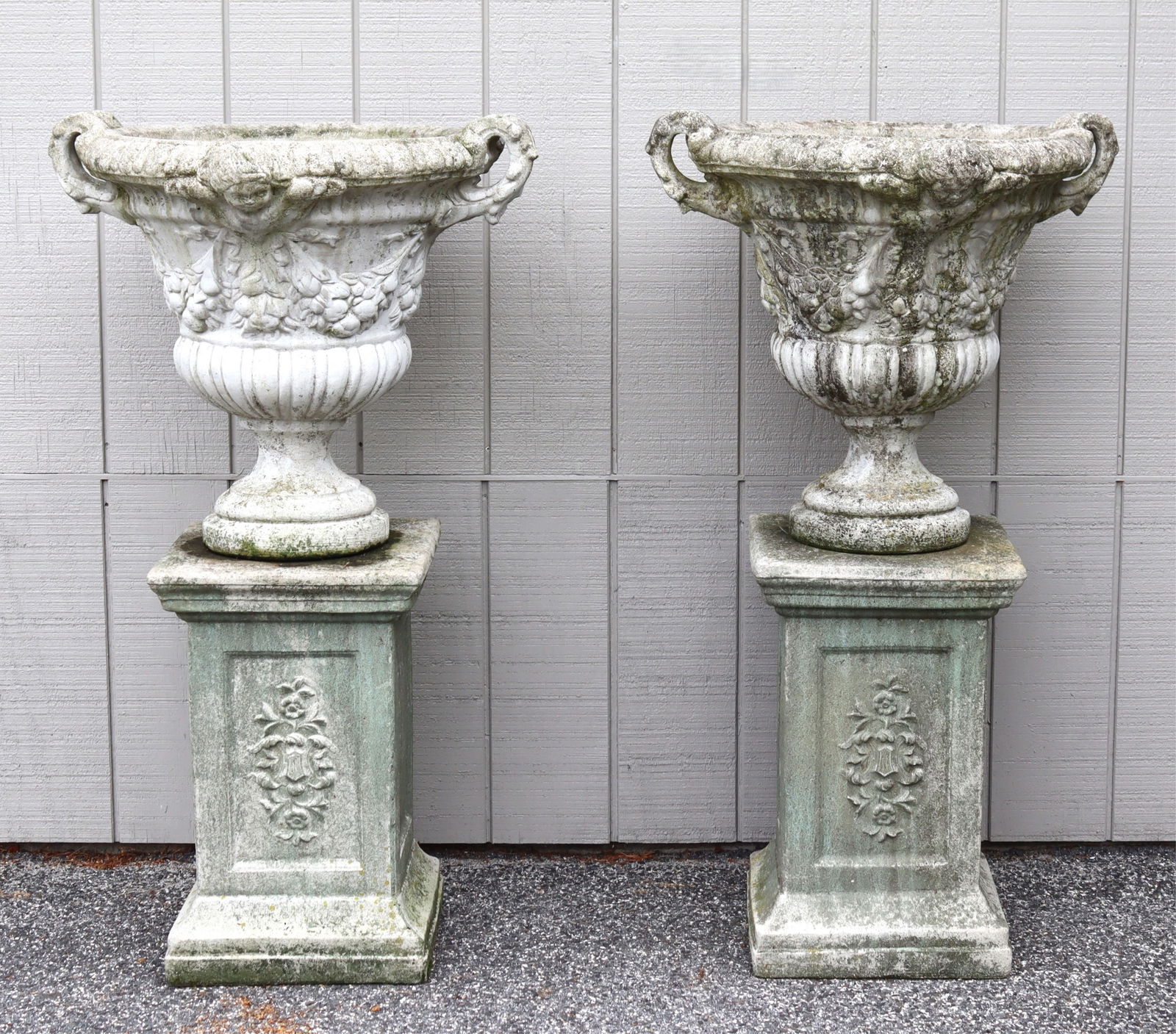 Pair Classical Style Cast Cement Urns/Pedestals