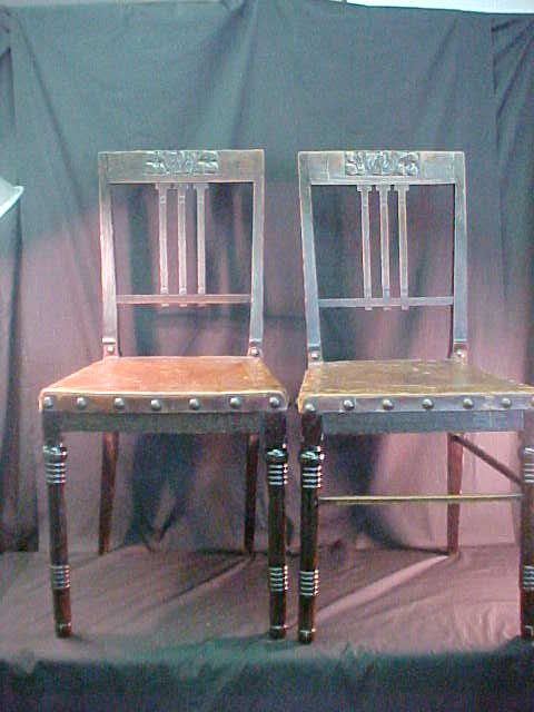 PAIR CONTINENTAL LEATHER CARVED CHAIRS