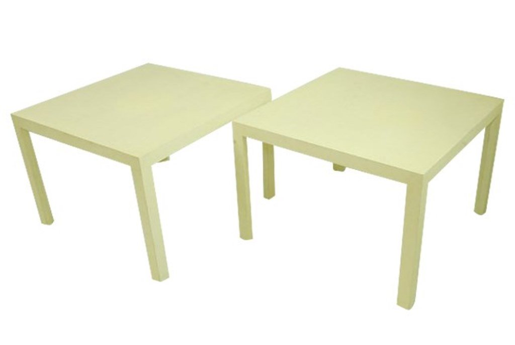 SoldA Pair of Contemporary Painted Side Tables Height 26 xA Pair of Contemporary Painted Side Tables 20th century decorated with green stringing on an ivory ground. Height 26 x width 27 7/8 x depth 22 inches. Estimate $200-400 Paint loss, water rings and surSee Sold Price