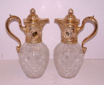 PAIR CRYSTAL & SILVER PITCHERS