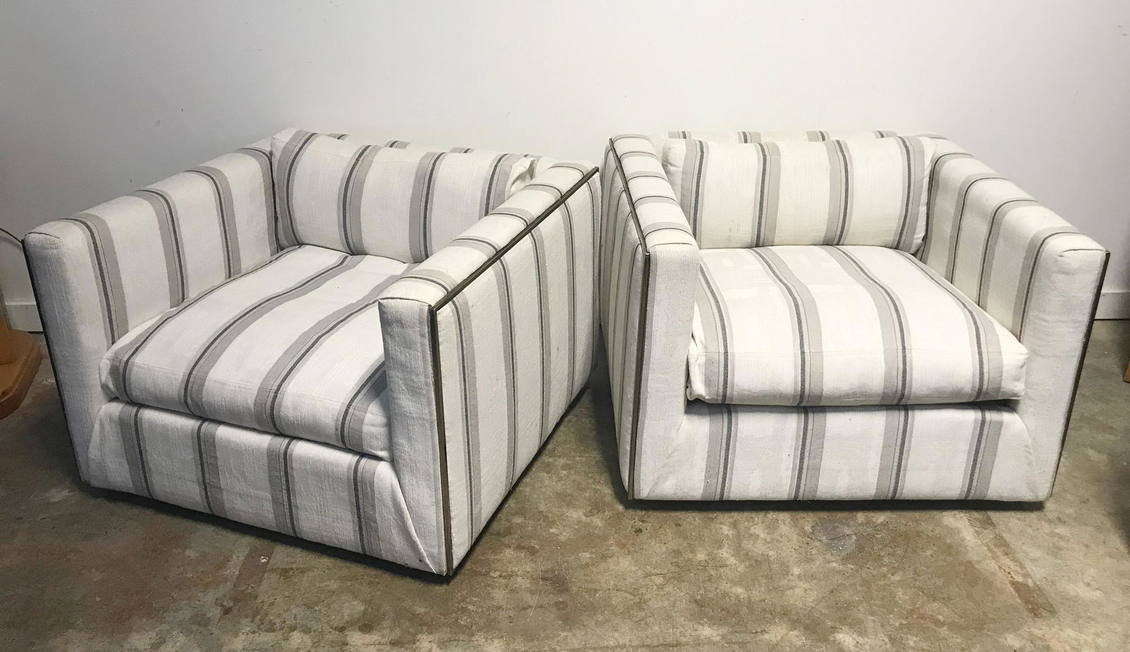 MILO BAUGHMAN-STYLE Pair of Lounge Chairs1970supholstery, Lucite legs, unmarkedheight 24 1/2in; ...Milo Baughman Pair of Mid-Century Floating Cube Club Chairs with Kravet UpholsteryMar 08, 2026Milo Baughman Pair of Mid-Century Floating Cube Club Chairs with Kravet Upholstery4 days LeftMilo Baughman Pair of Parson Chairs c. 1970s with Biege Fabric Modern FurnitureMar 15, 2026Pair of swivel modern design canvas upholstered chairsMar 08, 2026Set of Model 63970 Lounge Chairs by Asnago for G. PeggyBARBARA BARRY for Henredon Lounge Chairs.Mar 08, 2026Carlo Bartoli - Modular Sofa24 hrs LeftMcKinnon + Harris, 'Beaufort' Lounge Chairs (2)1 day LeftModern Style Gray Suede Tub Chairs, PairApr 30, 2026Thayer Coggin Lounge ChairsMar 15, 2026(3) STYLE OF MIES VAN DER ROHE CANTILEVER CHAIRS5 days LeftModern Style Gray Suede Tub Chairs, PairApr 30, 2026Classic Sofa - Petite Barrel ChairsPAIR UPHOLSTERED ARM CHAIRS WITH PILLOWS1 day LeftPair of Vintage Christian Liaigre Upholstered Armchairs in Pale Yellow6 days Left