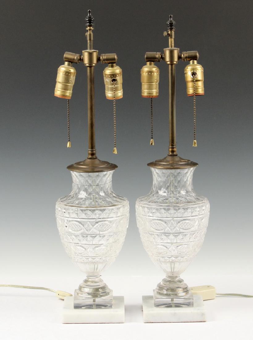 PAIR CUT CRYSTAL URNS AS TABLE LAMPS