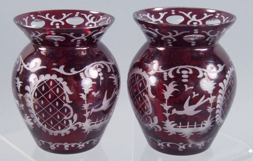 Pair Czechoslovakian Ruby Stained Vases