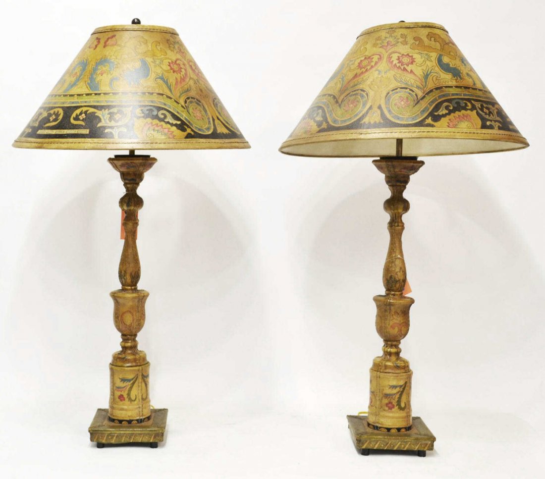 PAIR DECORATIVE HAND PAINTED TABLE LAMPS