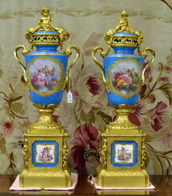 Lot English Porcelains Incl Urn and Dessert Plates, set 9Mar 21, 2026A PAIR OF MONUMENTAL FRENCH SEVRES STYLE ORMOLU-MOUNTED VASES1 day LeftPair of Monumental Sèvres-Style Gilt Bronze-Mounted Covered UrnsMar 17, 2026Pair of John-Richard Caramel & Bronzetone Ornate Lidded Urns2 hrs LeftA Pair Of Large 19th century French Ormolu Mounted Obsidian UrnsMar 15, 2026Pair of Sèvres-Style Red Porcelain Covered Urns1 hr LeftPair Manufacture de Sevres Porcelain Vases Carafe Etrusque the Arts 1839Mar 15, 20262 Hand Painted Porcelain and Gilt Bronze Table LampsMar 19, 2026Pr French Garniture VasesMar 14, 2026Pair of Paris Porcelain Gilt and Figural Vases1 hr LeftTWO CAPODIMONTE URNS CONVERTED TO LAMPSApr 21, 2026PAIR OF FRENCH OLD PARIS PORCELAIN URNS3 days LeftA PAIR OF CHELSEA-DERBY TWO-HANDLED URN-SHAPED PEDESTAL ICE PAILS, COVERS AND LINERS, CIRCA 1775Mar 25, 2026A PAIR OF ANTIQUE VIENNA PORCELAIN TWIN HANDLED VASES AND COVERS painted with figures on horses. 12Mar 17, 2026Chinoiserie Famille Rose Vases Mounted Lamps, PairApr 07, 2026A PAIR OF 19TH CENTURY DRESDEN PORCELAIN VASES AND COVERSMar 19, 2026