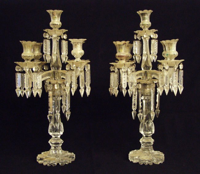 Pair Early Clear Glass Candelabra