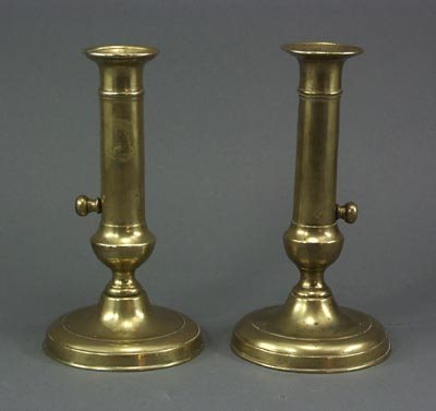 Pair Early Old 19thC. Brass Push Up Candlestick s