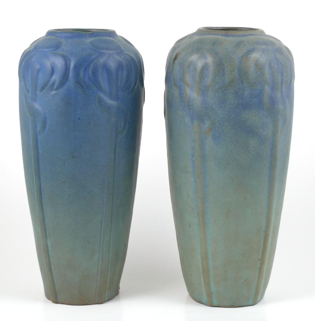 Pair Early Van Briggle 11" Pottery Vases