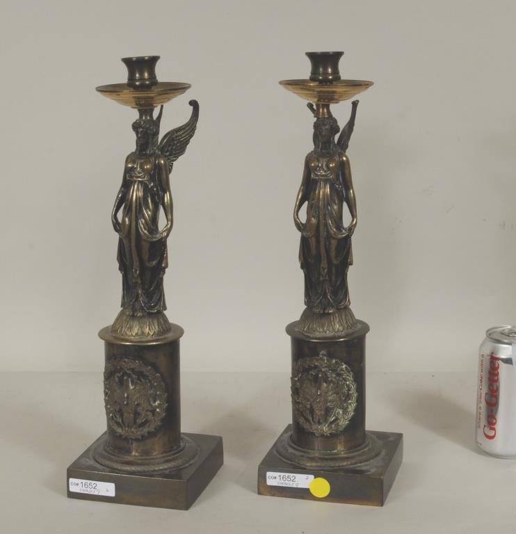 Pair Empire Figural Bronze Candlesticks