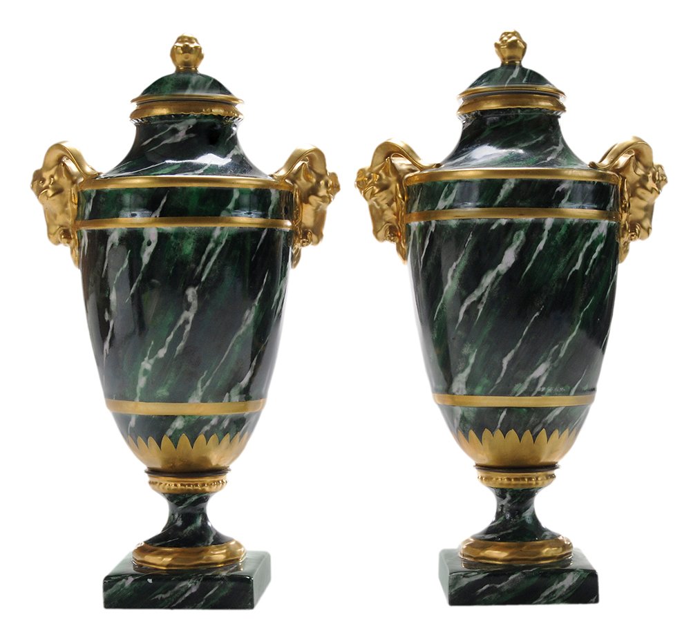 Pair of French Gilt Bronze-Mounted Marble UrnsMar 14, 2026Pair French Verde Antico Marble & Gilt Bronze Mounted Lidded Urns late 19th/20thFeb 28, 2026(2) MINTON STYLE PATE-SUR-PATE PARCEL-GILT PORCELAIN URNS3 days LeftPair of Monumental Palace-Scale Gilt Bronze–Mounted Malachite UrnsMar 12, 2026(2) SEVRES STYLE ORMOLU-MOUNTED & PAINTED COVERED URNS3 days Left(2) FRENCH SEVRES STYLE ORMOLU-MOUNTED PORCELAIN COVERED VASES3 days LeftEMPIRE STYLE MALACHITE PORCELAIN GILT BRONZE CASSOLETTESMar 07, 2026An antique pair of French Sevres style decorated gilt and cobalt covered ceramic vases5 days LeftPair Sevres France Porcelain Twin Handled Covered Urns, 19th C. Courting ScenesFeb 28, 2026PAIR OF BRONZE AND FAUX GREEN MARBLE URN FORM WOOD LAMPS2 days LeftPair of Large 19th Cent. Sevres Porcelain and Bronze UrnsMar 03, 2026Pair of 19th Century French Sevres Style Hand Painted Porcelain and Bronze Covered UrnsFeb 26, 2026Set of 2 Neoclassical Baccarat Style Urns with Gilt Bronze and Malachite Bases2 days LeftPair of Stunning Fischer & Mieg Ornate Gilt Cobalt Blue Porcelain Urns - 24" tallMar 15, 2026Pair 19th Century Sevres Porcelain UrnsMar 15, 2026A PAIR OF NEOCLASSICAL STYLE BRONZE ORMOLU AND PORCELAIN URNS, FRENCH, 19TH CENTURY,2 days Left