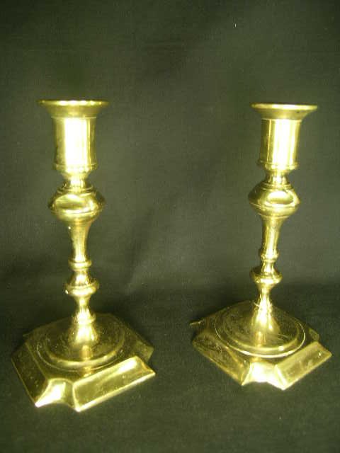 PAIR ENGLISH BRASS ANTIQUE CANDLESTICKS