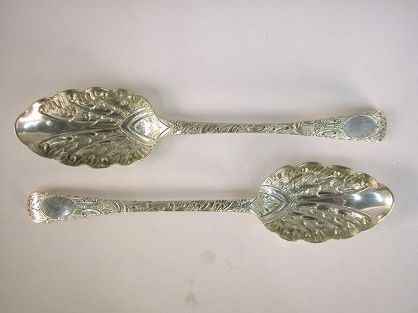 Pair English silver berry spoons,
