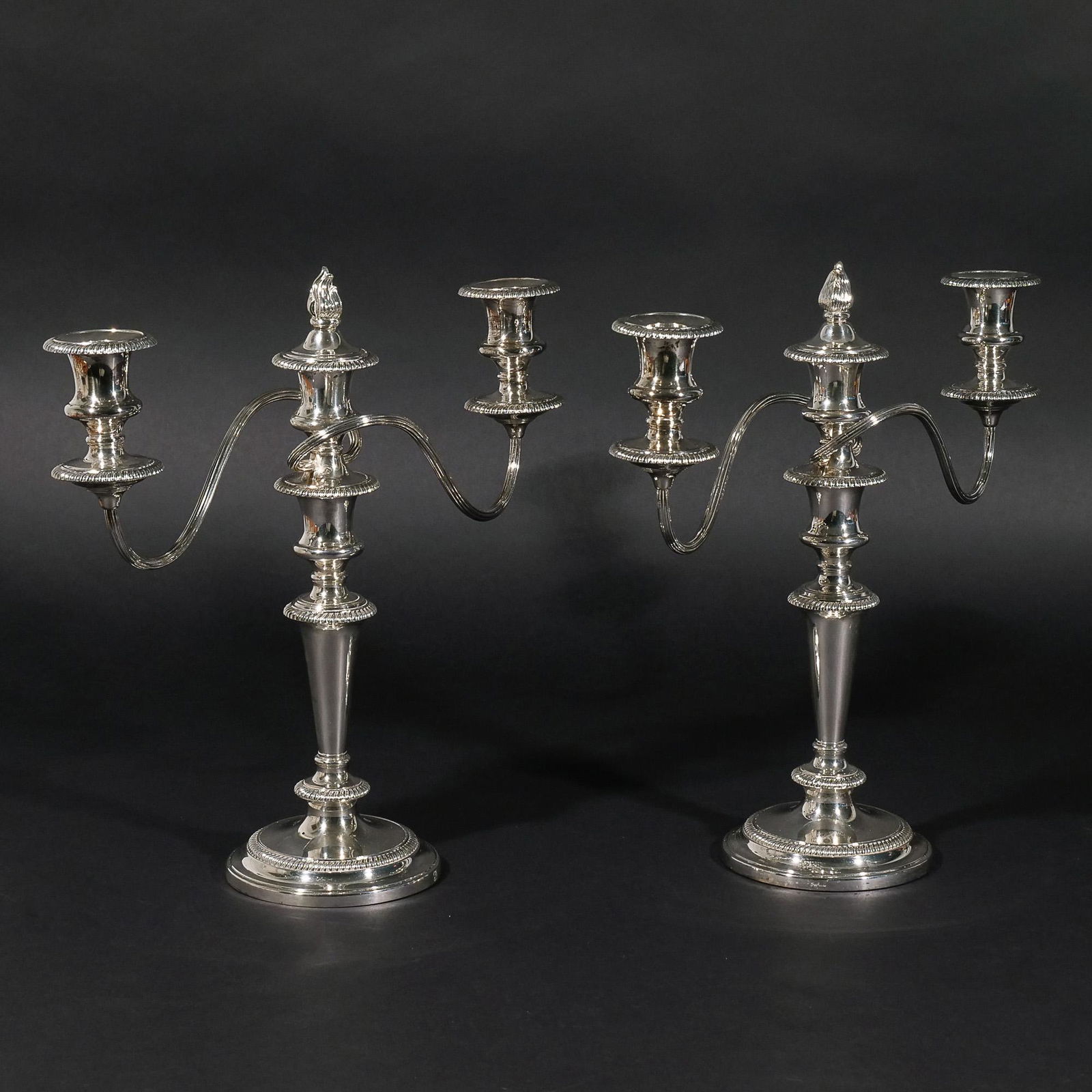 PAIR ENGLISH SILVER-PLATED CANDELABRA